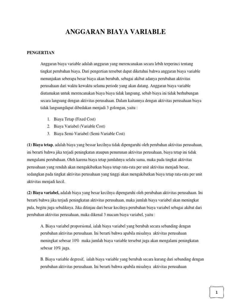 11.05.2020 · memahami biaya variabel (variable cost) secara garis besar ada dua jenis biaya yang dikeluarkan perusahaan guna menjalankan bisnisnya, yakni biaya tetap (fixed cost) dan biaya variabel (variable cost). Biaya dalam arti expense adalah biaya yang dikorbankan untuk mendapatkan pendapatan. Kesimpulan semua biaya yang terjadi di dalam suatu perusahaan dapat dikategorikan menjadi 3 jenis biaya , yaitu fixed cost , variable cost dan semi variable cost. Biaya tenaga kerja langsung … Pengertian biaya variabel (variable cost), contoh, cara menghitung dan manfaatnya. Biaya variabel ini dapat dihitung sebagai jumlah biaya marjinal (marginal cost) dari semua unit yang diproduksi atau biaya yang berkaitan langsung dengan produksi suatu barang. Akuntansi, waktujakarta.com — jika anda ke halaman ini untuk lebih memahami istilah 'biaya variabel' atau. Selain itu, semua biaya variabel adalah … Bahan baku untuk membuat sebuah risoles adalah rp 3.000, dan perhari dapat membuat 150 risoles dengan bantuan 2 tenaga … Semi variable cost adalah biaya yang sudah ada komponen biaya tetapnya, tetapi akan menjadi lebih tinggi lagi apabila ada penggunaan atau penjualan seperti contoh biaya telepon di atas. 13.10.2021 · sedangkan, pengertian variable cost adalah biaya variabel yang bisa naik atau turun tergantung dari banyak atau sedikitnya produksi/penjualan perusahaan tersebut. Cara mengurangi biaya variabel termasuk membeli bahan baku yang lebih murah, bekerja sama dengan bank yang membebankan biaya bunga yang lebih rendah. Biaya variabel (variable cost)biaya variabel atau disebut variable cost adalah suatu biaya yang dikeluarkan oleh perusahaan dalam nilai yang fluktuatif menyesuaikan perubahan jumlah produk yang diproduksi.